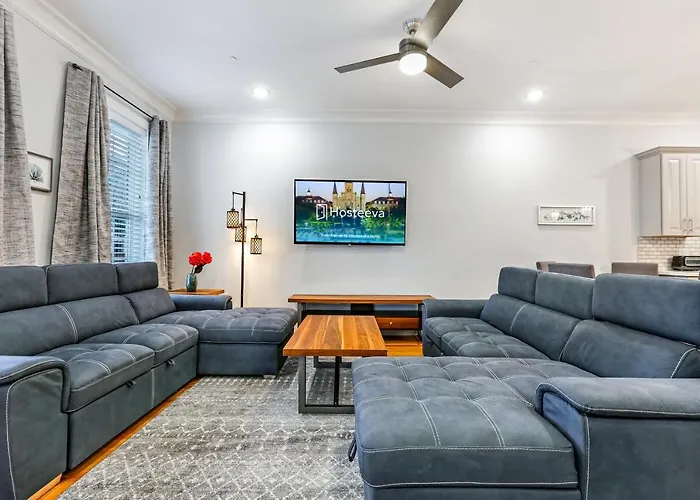 Disfruta de tus vacaciones en Nueva Orleans en el apartamento Stunning Modern And Fully-Upgraded 5 Bedroom W Pool Nueva Orleans. Ideal para quienes buscan una experiencia auténtica, está situado a unos 10 minutos en coche de la calle Frenchmen y a 1 km del Estadio Mercedes-Benz Superdome.